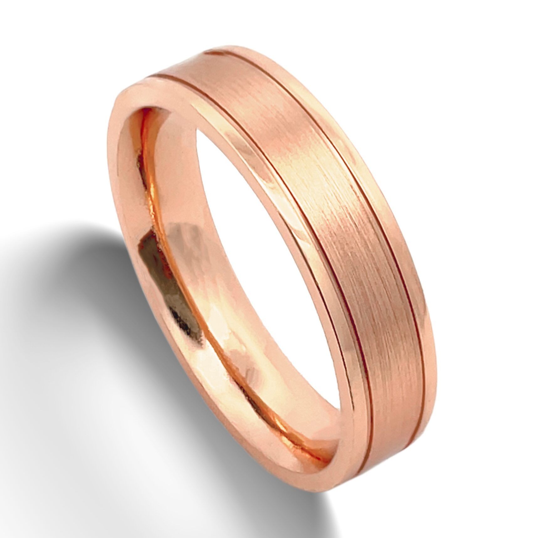 High polish micro-grooves separate medium polished rails from a matte finished center. Flat profile.