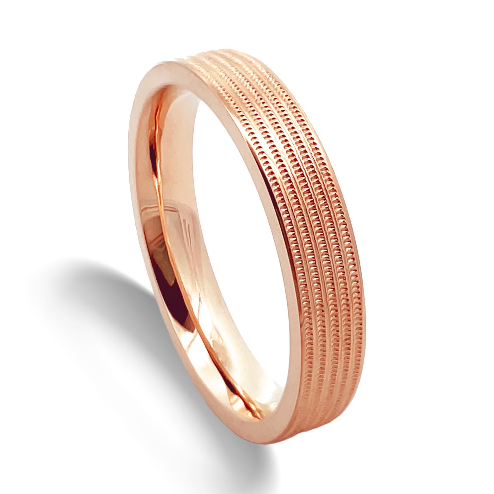 Evenly spaced rows of milgrain decorate these bands.