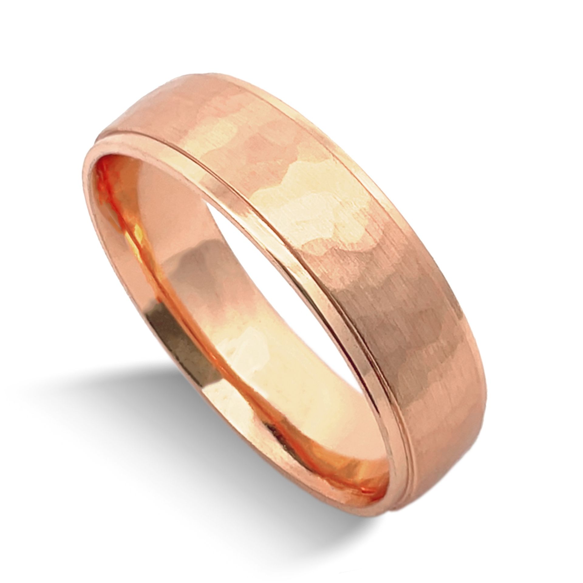 Polished stepped rails, hammered center. Slightly rounded profile.