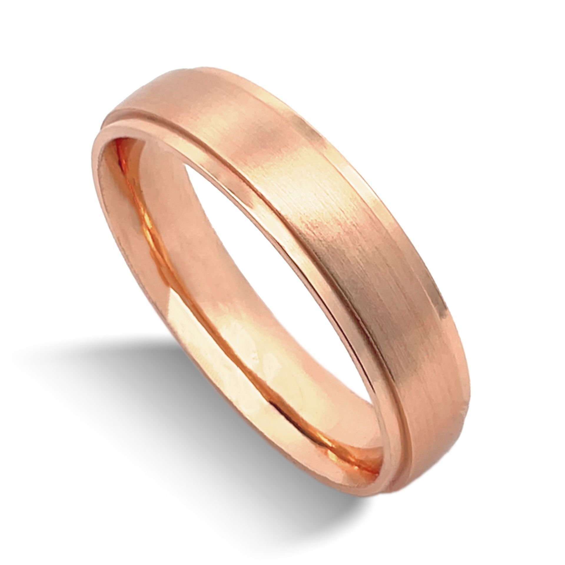 Polished stepped rails and matte center. Comfort fit interior.